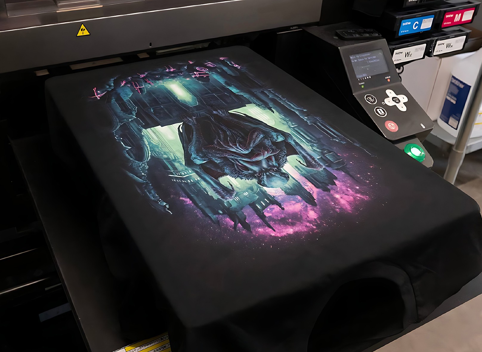 چاپ DTG یک روش پیشرفتهی چاپ دیجیتال است که مستقیماً جوهر را روی پارچه اعمال میکند. در ادامه توضیحی علمی–فنی و اطلاعاتی درباره این فناوری ارائه میدهم=در چاپ DTG، از پرینترهای جوهرافشان صنعتی استفاده میشود که با بهرهگیری از جوهرهای پایهآبی (Water-Based Pigment Inks)، طرح دیجیتال را مستقیماً روی الیاف پارچه منتقل میکنند. جوهر بهجای نشستن سطحی، تا حدی به ساختار الیاف نفوذ میکند.چند مورد از مزایای مهمی که این نوع چاپ دارد = بدون نیاز به شابلون و مناسب تیراژ کم و چاپ سفارشی و مصرف کم جوهر و قابلیت چاپ گرادینت و جزئیات بسیار ظریف و... می باشد و اینکه این چاپ چاپی است که بدون هیچ گونه زیر دستی است و برگشتی با جزییات دارد.کیفیت و دوام این چاپ=وضوح بسیار بالا (مناسب تصاویر فوتورئال) و نرمی سطح چاپ (Hand Feel طبیعی) می باشد.جوهرهای مورد استفاده در این دستگاه شامل پایه آب (Water-Based Pigment) و بدون حلالهای سمی (Eco-Friendly) شامل:رنگدانه (Pigment) و رزین اتصالدهنده و افزودنیهای تثبیتکننده و برای چاپ روی پارچه تیره، جوهر سفید (White Ink) بهعنوان لایهی زیرین استفاده میشود.